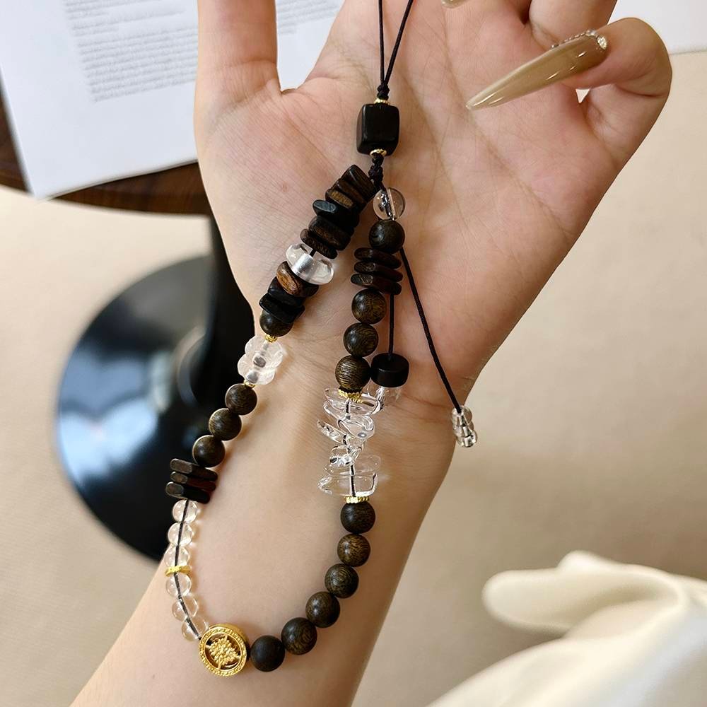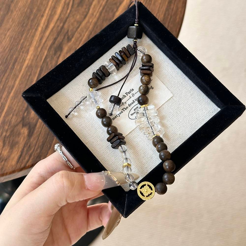 Product Information: Clear Quartz Chips/Irregular Beads, Agarwood 8mm (14 beads), Clear Quartz 6mm (6 beads), Clear Quartz Twin Lotus Bead (3 pieces), Clear Quartz Safety Buckle (1 piece). Alloy Accessories.