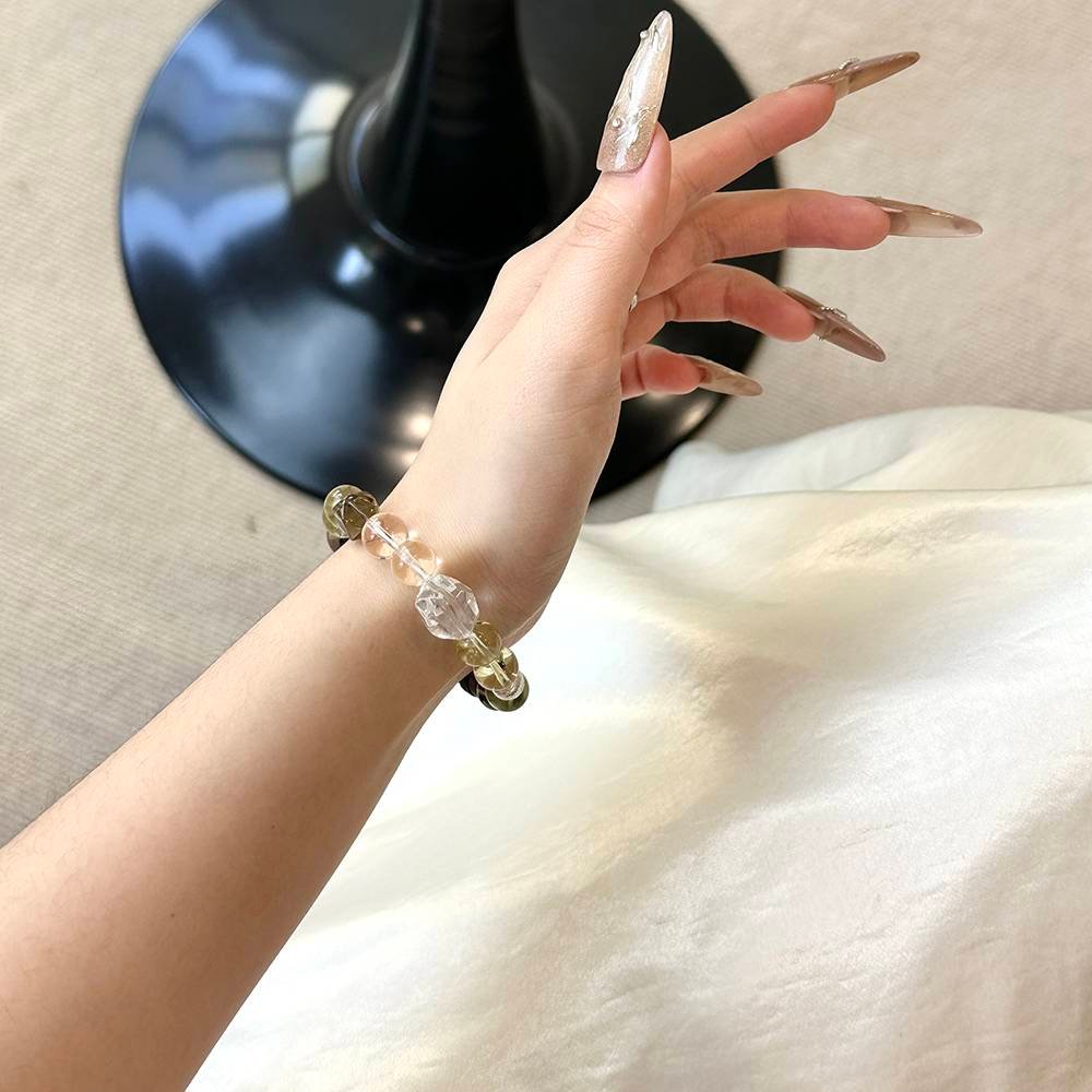 The designer intentionally placed “wealth-attracting” Citrine on the bracelet’s outer layer to actively draw in fortune; “stress-relieving” Smoky Quartz is hidden inside to quietly absorb negativity; Clear Quartz sits close to Citrine to amplify wealth energy, forming a perfect loop—like installing an “energy regulator” on your wrist~