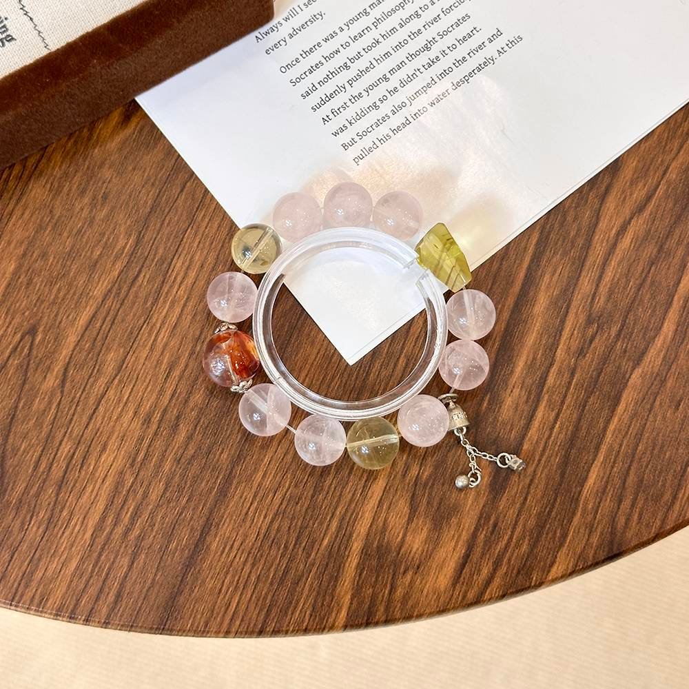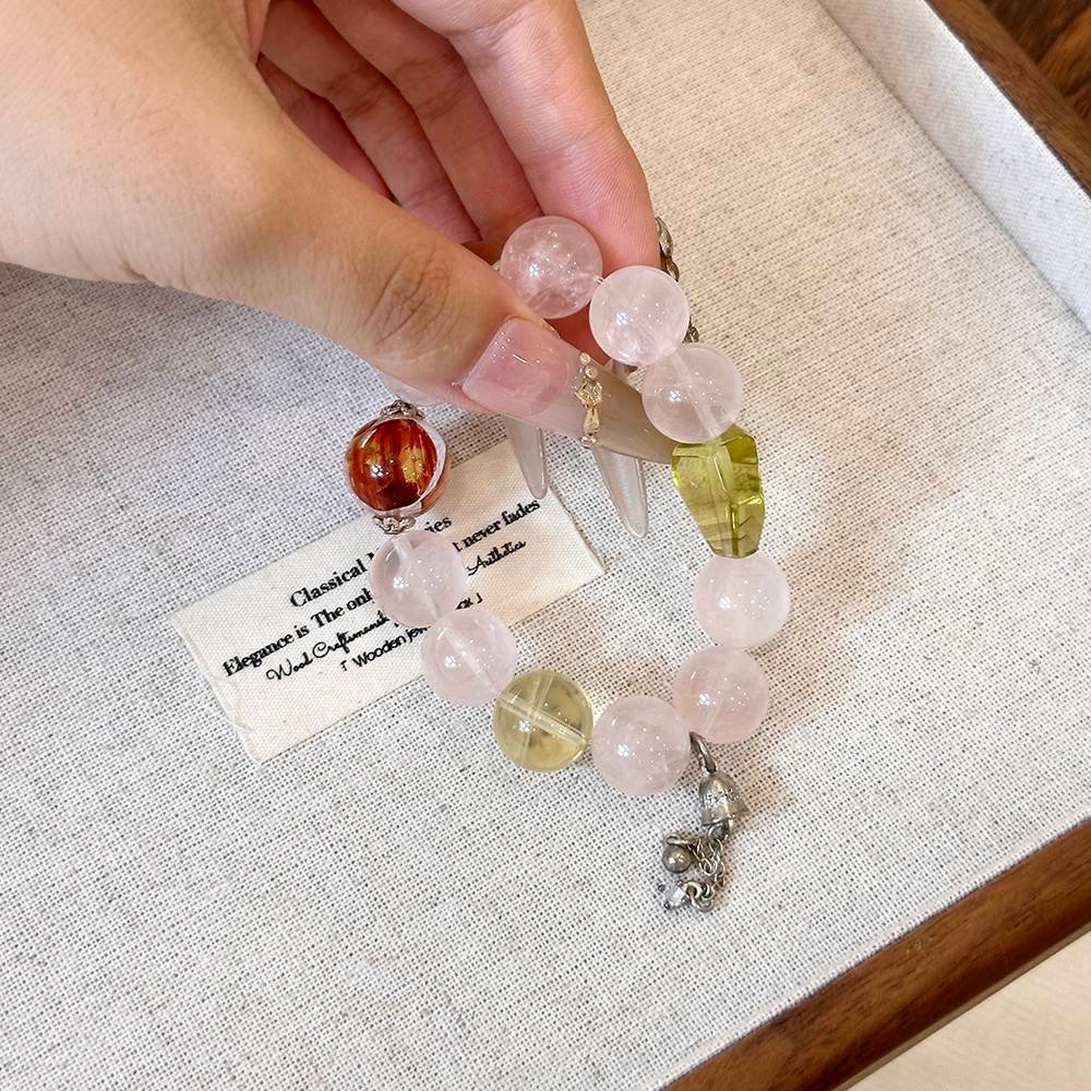 The tender pink of the Rose Quartz attracts romance, the golden glow of the Citrine draws in wealth, and the Red Flower Agate shows rainbow light to bring good fortune. The collision of pink, gold, and red is like a palette of pure luck.